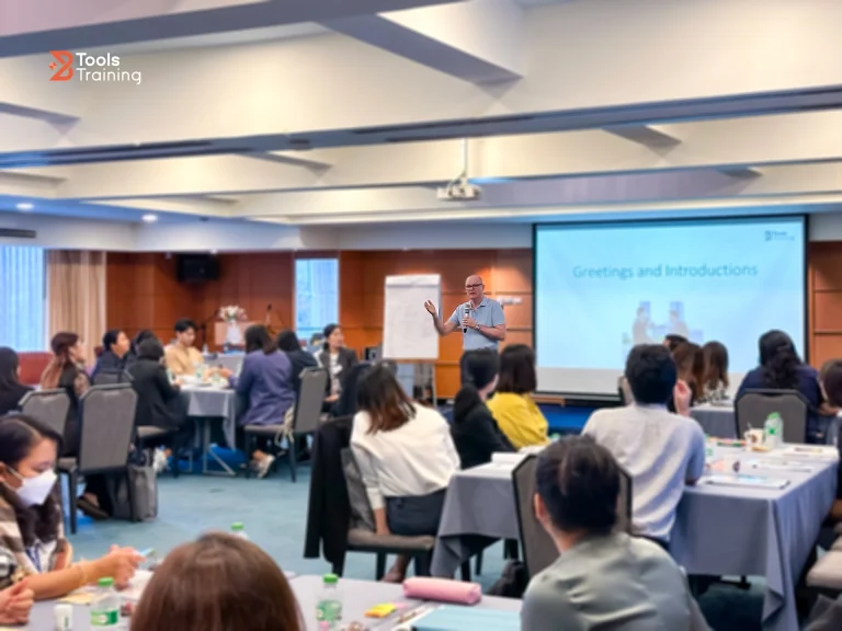 Role-Play: จำลองสถานการณ์จริงในที่ทำงาน เช่น การเจรจาต่อรอง, การรับมือข้อร้องเรียน, หรือการประชุมทีม